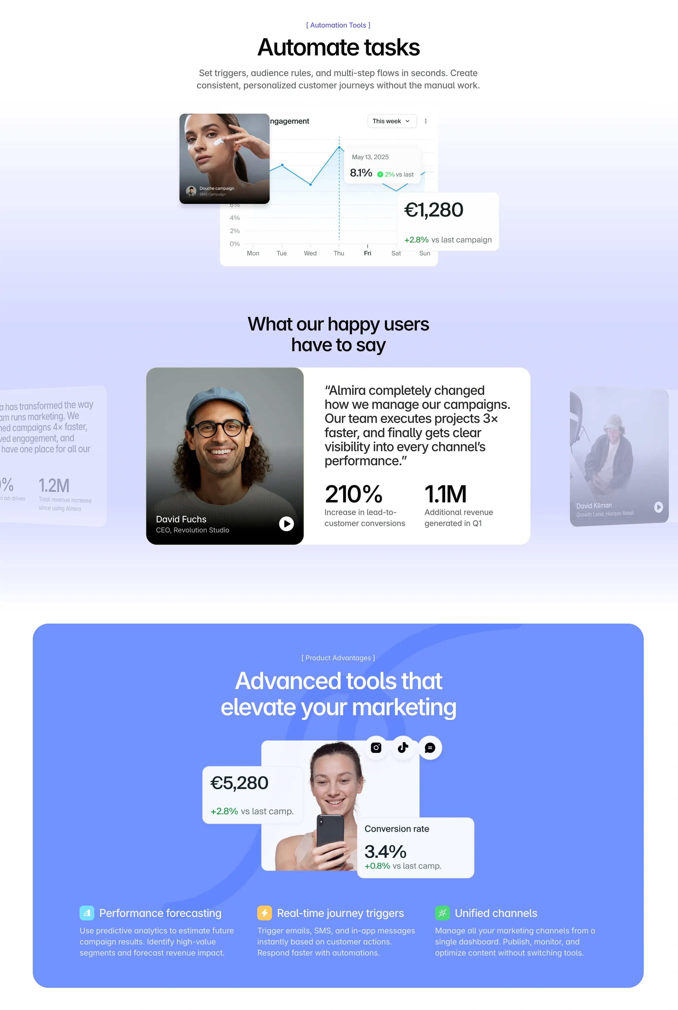 Almira is a premium Framer template crafted for SaaS products, marketing tools, and early-stage startups that want a clean, high-converting website without design effort. Built with clear messaging, structured sections, and modern UI patterns, it helps you present your product with credibility and speed.