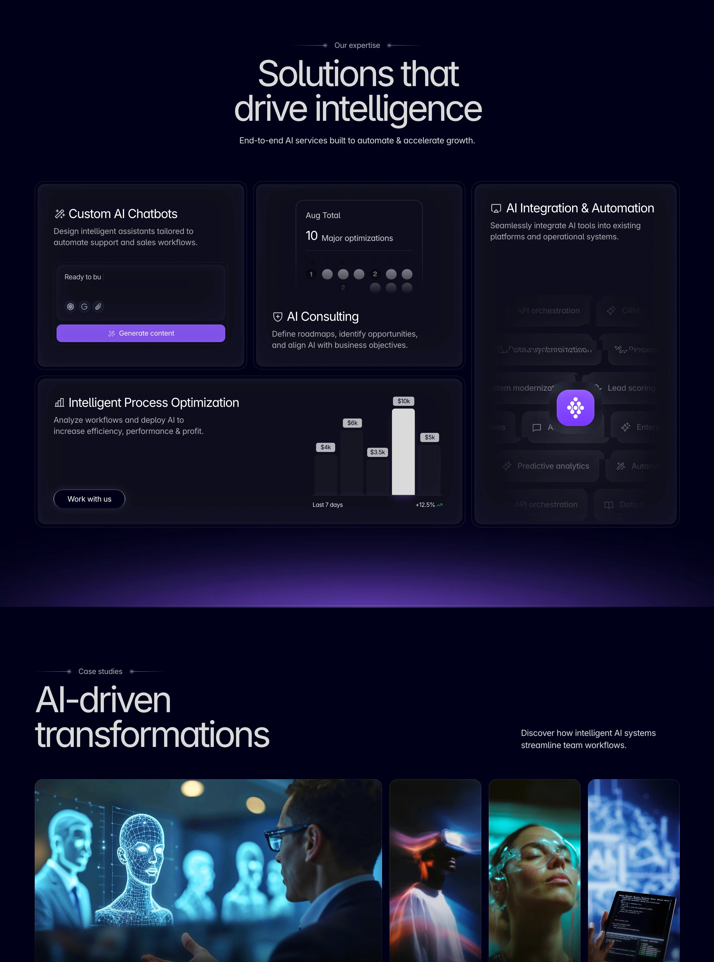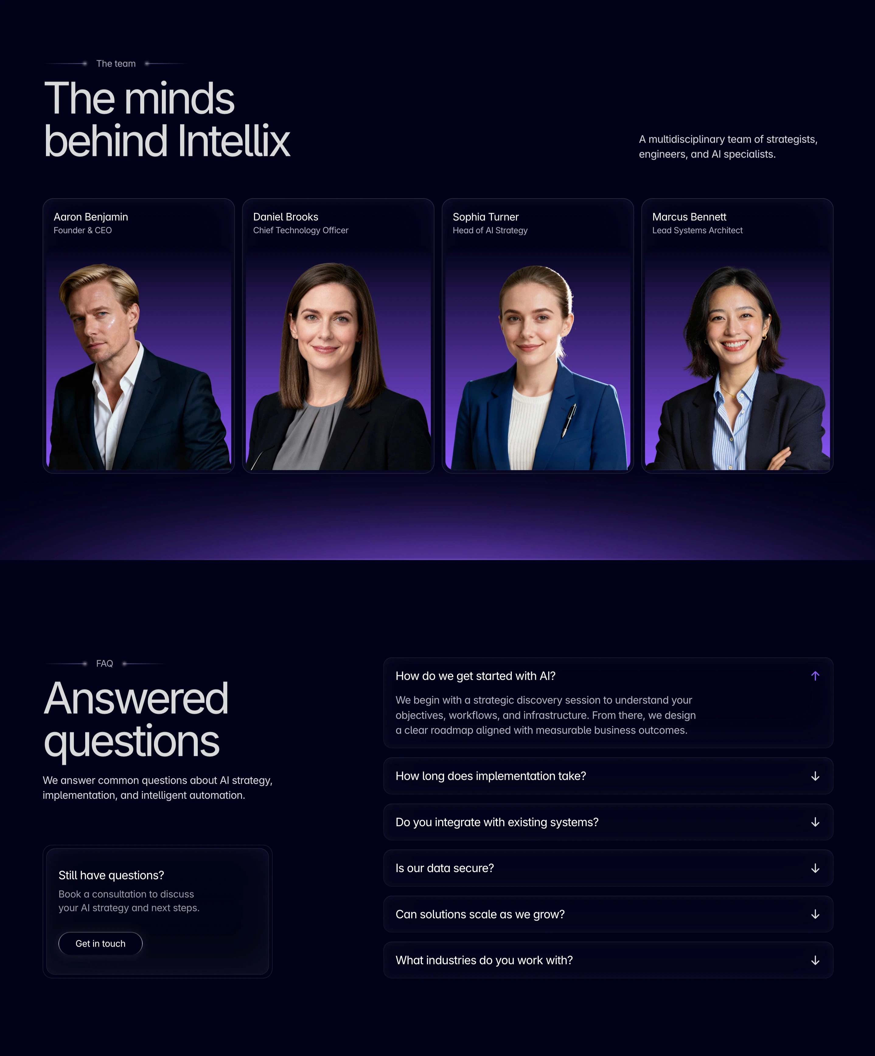 Whether you specialize in AI consulting, Design & development, enterprise advisory, or system integrations, Intellix is designed to guide visitors from discovery to inquiry. The layout balances storytelling with measurable impact, making it ideal for positioning your agency as innovative and enterprise-ready.